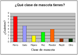 Consiste en dos ejes perpendiculares y una barra o rectángulo para cada valor de la variable. Normalmente, se suele colocar en el eje horizontal los valores de la variable (aunque también se puede hacer en el vertical). El otro eje se gradúa según los valores de las frecuencias. La representación gráfica consiste en dibujar una barra o un rectángulo para cada uno de los valores de la variable de altura igual a su frecuencia.
